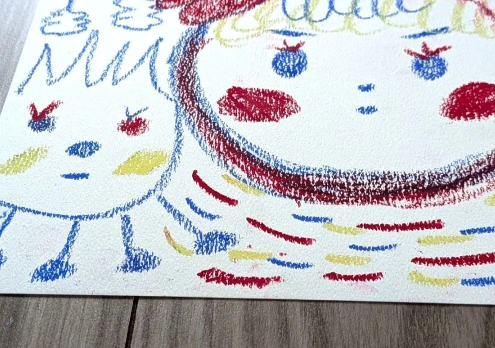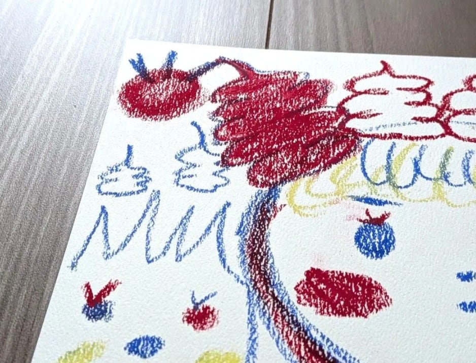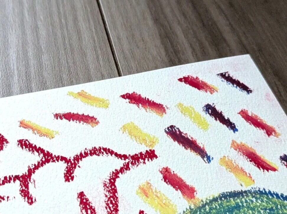 オイルパステルで描きました。B5サイズ(257mm×182mm)のシリウス水彩画紙を使用しております。表面にパステルフィキサチフをかけております。額縁なしです。