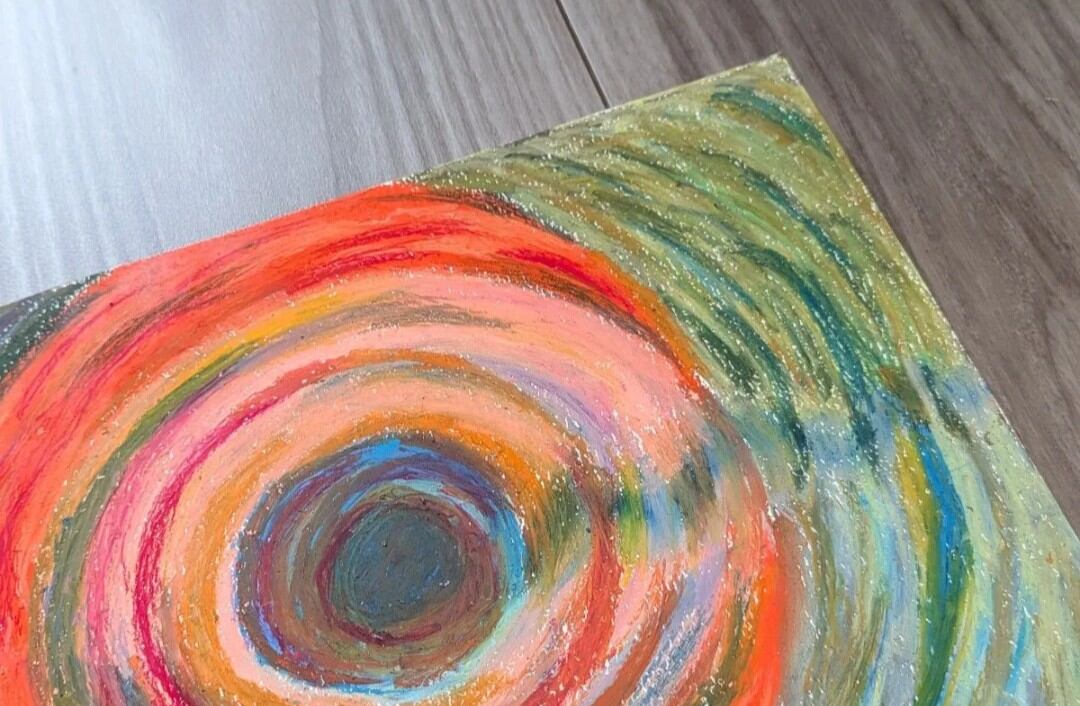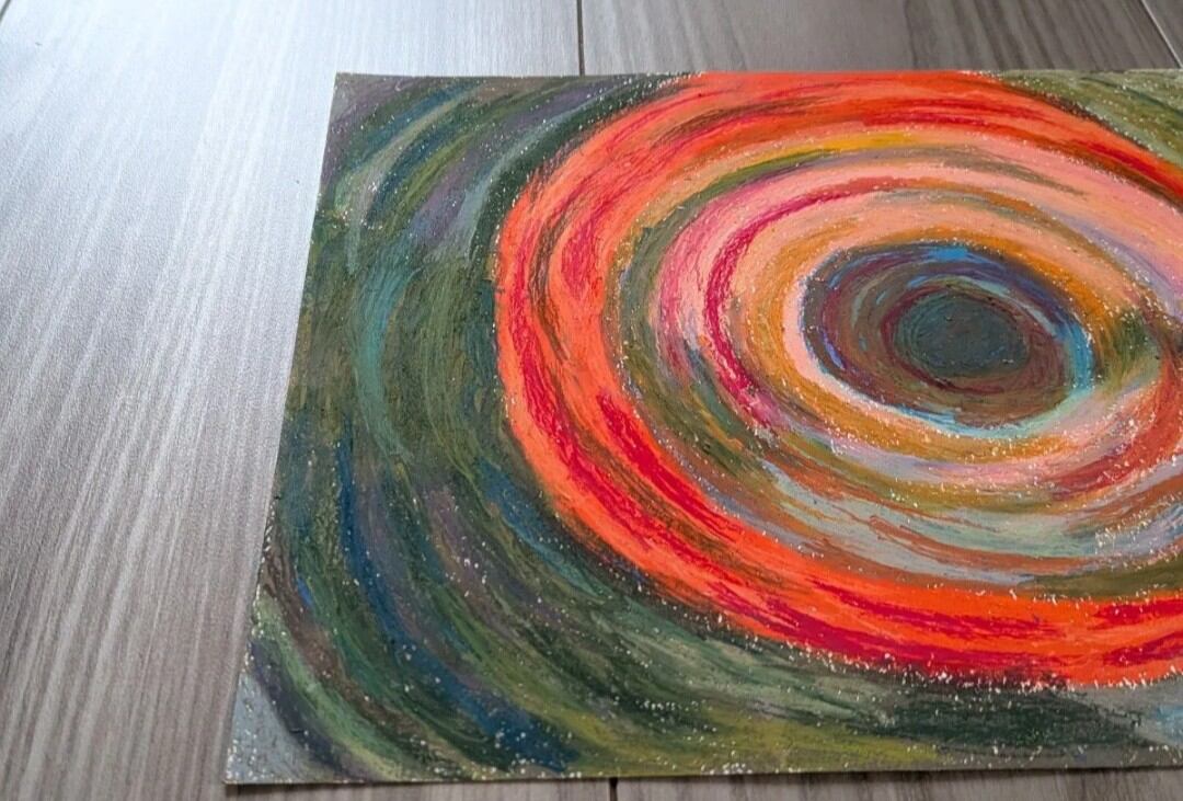 オイルパステルで描きました。B5サイズ(257mm×182mm)のシリウス水彩画紙を使用しております。表面にパステルフィキサチフをかけております。額縁なしです。