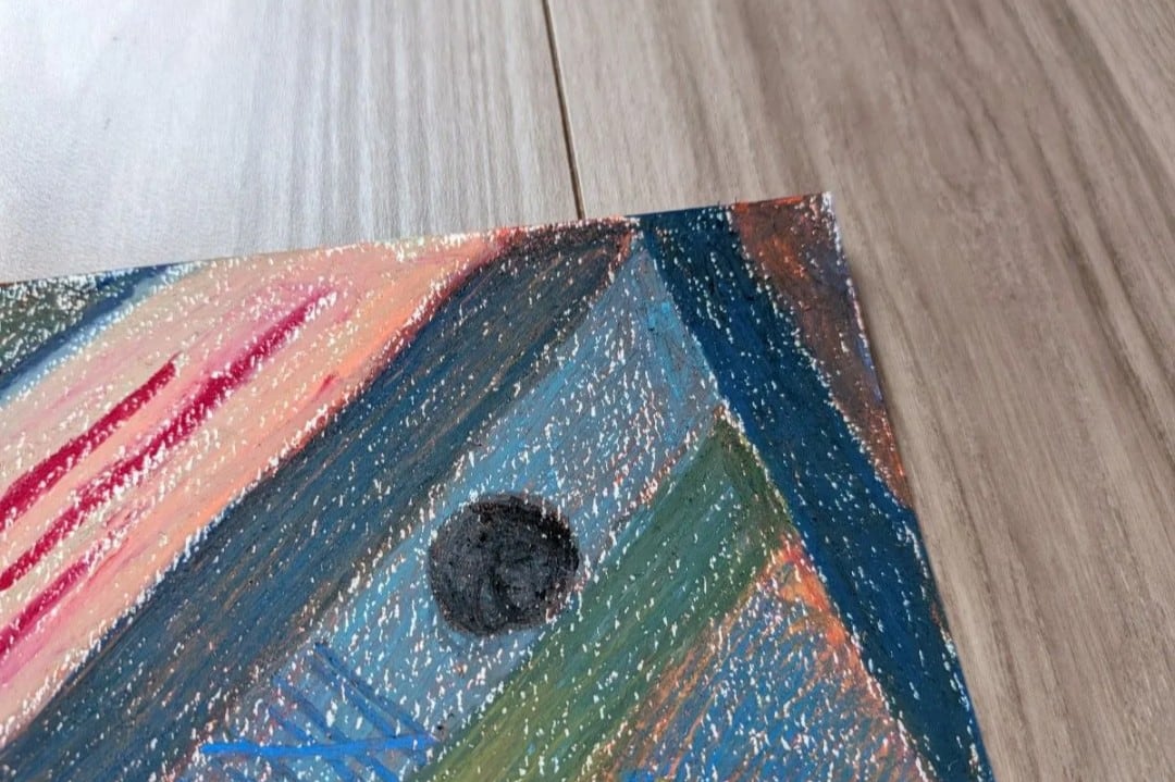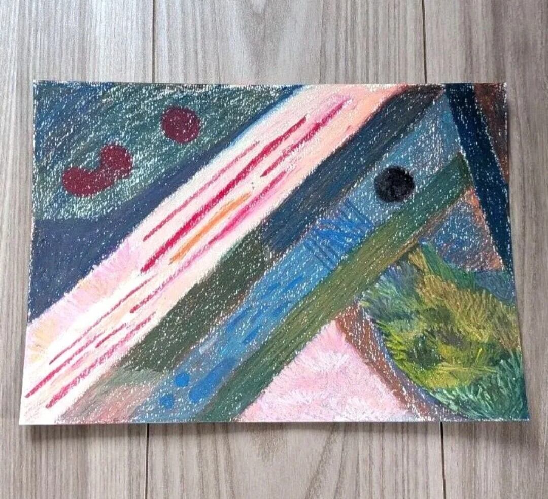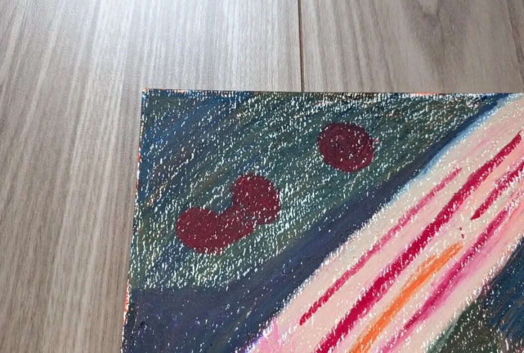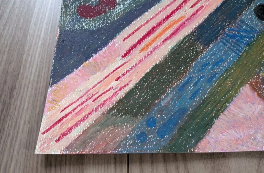 オイルパステルで描きました。B5サイズ(257mm×182mm)のシリウス水彩画紙を使用しております。表面にパステルフィキサチフをかけております。額縁なしです。