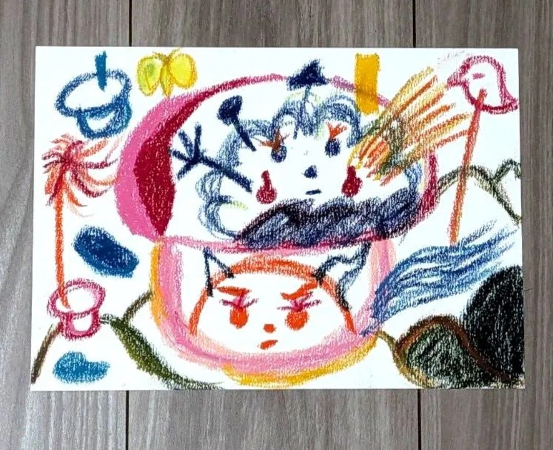 オイルパステルで描きました。B5サイズ(257mm×182mm)のシリウス水彩画紙を使用しております。表面にパステルフィキサチフをかけております。額縁なしです。