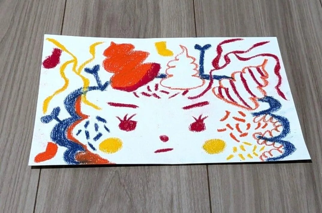 オイルパステルで描きました。B5サイズ(257mm×182mm)のシリウス水彩画紙を使用しております。表面にパステルフィキサチフをかけております。額縁なしです。