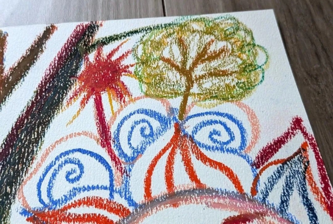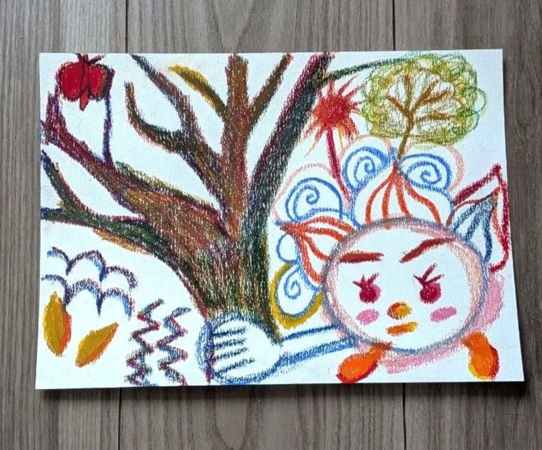 オイルパステルで描きました。B5サイズ(257mm×182mm)のシリウス水彩画紙を使用しております。表面にパステルフィキサチフをかけております。額縁なしです。