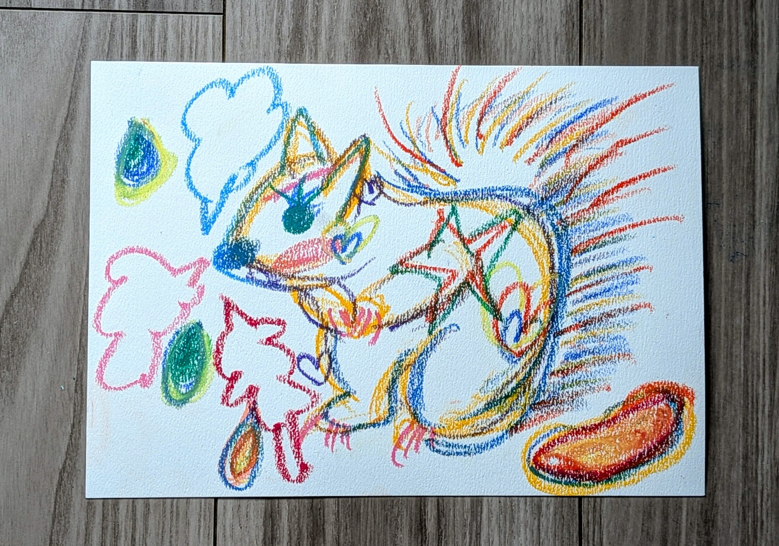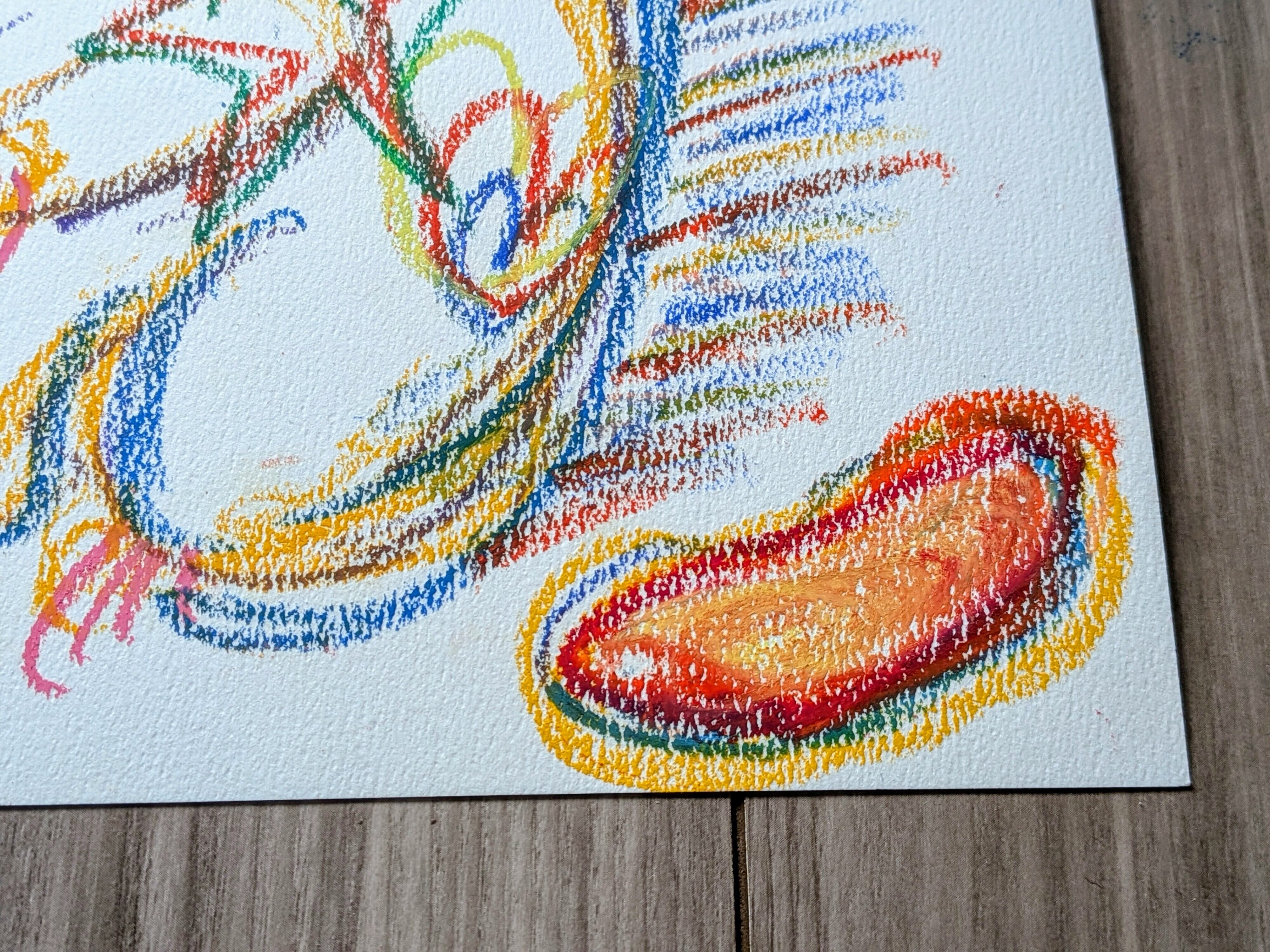オイルパステルで描きました。B5サイズ(257mm×182mm)のシリウス水彩画紙を使用しております。表面にパステルフィキサチフをかけております。額縁なしです。